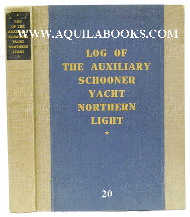 Copy #13/100 020. Borden,John. Log of the Auxiliary Schooner Yacht Northern Light. Chicago: Privately Printed, 1929. 1st edition limited to 100 numbered and signed copies. [192]pp. Near fine. Quarto in original quarter beige and blue cloth boards with spine label, yellow top edge, others uncut. Endpaper maps, tipped in plates (including frontispiece) from photos, and decorative initials printed in red. Addenda for July 27, 1927 tipped-in. Spine label slightly chipped and a few pages browned from newspapers clippings, else a crisp, clean copy. Rare. SOLD Not in A.B. Log of the Borden-Field Museum Alaska-Arctic Expedition 1927.