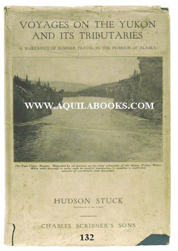 In the Scarce Dust Jacket. 132. Stuck, Hudson. Voyages on the Yukon and Its Tributaries. A Narrative of Summer Travel in the Interior of Alaska. New York: Scribner's Sons, 1917. 1st Edition. xvi,[2],,397pp. Octavo in original gilt lettered pictorial blue cloth and dust jacket with photogravure frontispiece, plates from photos, and 2 folding maps. Dust jacket soiled and chipped at extremities, head and foot of spine with several closed tears. Very scarce in the dust jacket. SOLD A.B. 17126. Description of the Yukon River, including Yukon Flats, Bering Sea to St. Michael and its tributaries the Porcupine, Chandalar, Tanana, Koyukok, Innoko and Iditarod Rivers, and Chageluk Slough.