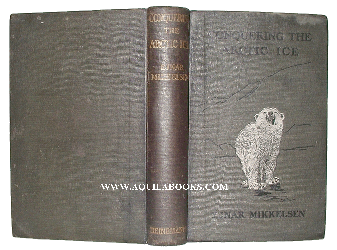 Inscribed Copy 088. Mikkelsen, Ejnar. Conquering the Arctic Ice. London: William Heinemann, 1909. 1st Edition. xviii, 470pp. Very good. Octavo in original pictorial cloth, gilt top edge others uncut, with new endpapers, with illustrations from photos (including frontispiece) and 2 maps, and folding map. Inscribed and signed on first blank, name of recipient has been torn away with loss top half inch of page. Generally a clean, sound copy. 425.00 A.B. 11421. Account of the Anglo-American Expedition, 1906-07, led by Mikkelsen and Leffingwell through the Bering and Beaufort Seas to winter quarters on Flaxman Island, and the spring sledge trip over the pack-ice of the Beaufort Sea. With a description of Flaxman and Herschel islands, and sledge journey from Hershel Island along the northern Alaskan coast, across the Seward Peninsula to Nome then up the Yukon and Tanana Rivers to Fairbanks and Valdez.