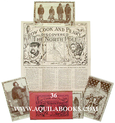 Complete Set of Cook-Peary Postcards 036. [Cook-Peary Controversy]. How Cook and Peary Discovered the North Pole [Set of 50 Postcards]. Chicago: Printed by Kawin & Co. for Farm Press, [c1909]. Very good. 50 Postcards of Cook and Peary (primarily Peary) and discovery of the North Pole in original illustrated shipping box, lacking ends and one sheet prospectus (approximately 25 x 23.5 cm) folded. Complete and with the scarce prospectus and box. SOLD