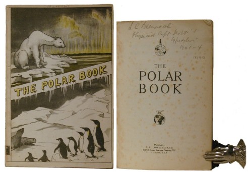 Signed by Bernacchi [British Polar Exhibition. 1930]. The Polar Book. London: E. Allom & Co. Ltd, [no date circa 1930]. 1st Edition. (Softcover) 115pp. Very good. Octavo in original pictorial wrappers with folding map (inside rear cover). Title page has moderate foxing and covers are a bit soiled. Contributors include explorers and historians on the history and aims of polar exploration, the science and natural history, whaling, equipment and provisioning. L.C. Bernacchi's copy with his signature and title on the title page. See photograph.
