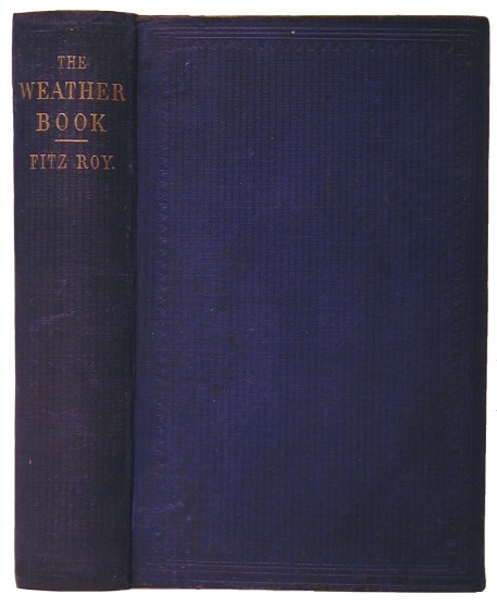 Fitzroy, Rear Admiral. The Weather Book: A Manual of Practical Meteorology. London: Longman, Green, Longman, Roberts, & Green, 1863. 1st Edition. x,(2),464,4 page ad. Very good. Octavo. Original blue ribbed cloth. Gilt title. Recased with new headbands. 16 plates including two on printed blue paper showing storm and wind patterns and two double page lithos of cloud patterns. Presentation copy inscribed on the title page to his cousin Lady Francis Pratt. Very scarce. In 1854 FitzRoy had been given the task of meteorological statist within the Board of Trade, in effect becoming head of Britain's weather office. FitzRoy did much to coin the term 'forecasting' and to initiate the wide-ranging processes of a weather bureau. He invented a cheap and serviceable barometer, called Fitzroy's Storm Barometer. The Weather Book summarizes much of his developed ideas and was his last work. He committed suicide in 1865, having suffered from depression for a long while. See photograph.
