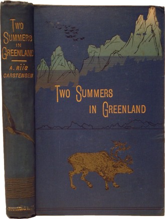 Carstensen, A. Riis. Two Summers in Greenland. An Artist's Adventures Among Ice and Islands, in Fjords and Mountains. London: Chapman & Hall, 1890, 1st Edition. xxxi,185 pp. Very good. Octavo in original decorated cloth, uncut. 28 plates from paintings by the author and folding map. Some minor bumping to corners else an attractive copy in the original decorative cloth binding. A.B. 2917. "Description of the scenery, Eskimos and administration of west Greenland, based on the author's experiences with J. A. D. Jensen's survey party in 1884, and with a group of Danish scientists, in 1888." See colour illustration.