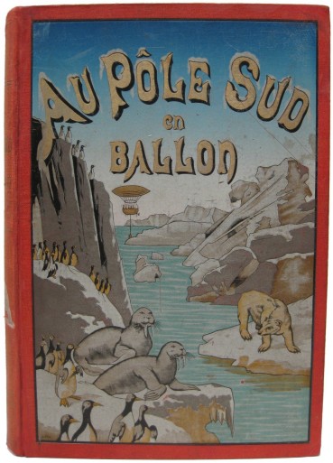 Uminski, W. Au Pole Sud En Ballon Adapte Du Polonais. Paris: Ancienne Librairie Furne Combet & Cie, [circa 1880], 1st Edition. vii,9-243,(2) pp. Very good. Folio. Original red cloth with heavily decorated front board. 72 engravings including full page. All edges gilt. Paper a bit browned as usual. Minor soiling to boards. Spine a bit faded. Wonderful 19th century French novel in the style of Jules Verne complete with the usual mistake of putting polar bears at the south pole. Very attractive, see front cover.