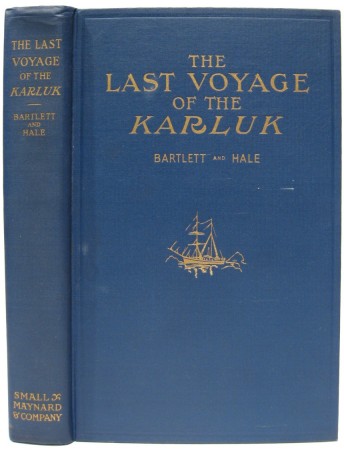 Bartlett, Robert A. and Hale, Ralph T. The Last Voyage of the Karluk Flagship of Vilhjalmar Stefansson's Canadian Arctic Expedition of 1913-16. Boston: Small, Maynard and Company, 1916, 1st US Edition. [x],329pp. Near fine. Octavo. Original blue cloth with gilt decoration and title. Frontispiece. 25 plates and charts. Many pages uncut. A fine clean copy without the usual fading on the spine. Signed by Bartlett across the middle of the title page.