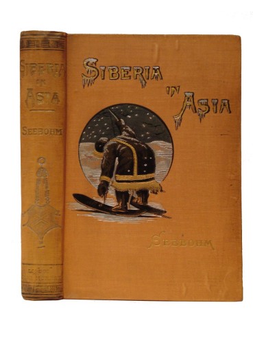 Seebohm, Henry. Siberia in Asia: A Visit to the Valley of the Yenesay in East Siberia with Description of the Natural History, Migration of Birds, Etc. London: John Murray, 1882, 1st Edition. xviii,304pp. + 32pp. (Publisher's catalogue dated January, 1882). Very good. Small Octavo (approximately 21cm tall) in original gilt lettered illustrated salmon colour cloth and coated black endpapers, with engraved illustrations in text and folding map. Spine a bit darkened with some minor rubbing. Arctic Bibl. 15674. Henry Seebohm (1832-1895) was an English steel manufacturer, and amateur ornithologist, zoologist and traveler. The second of two books on his natural history expeditions to the Yenisey tundra of Siberia which were reprinted in one volume as "The Birds of Siberia," 1901. See colour image.