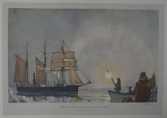 The steam barkentine Newport among whales Signed by William Gilkerson (#126992): $100 Unsigned (#126993): $50 |