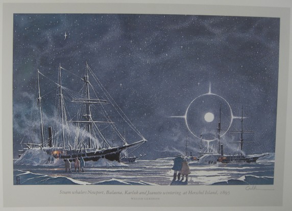 Steam whalers Newport, Balaena, Karluk, and Jeanette wintering at Herschel Island, 1895 Signed by William Gilkerson (#126961): $150 Unsigned (#126987): $50 |