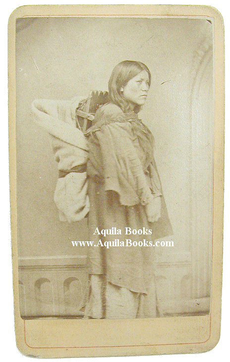 # 118 - 293 Original CDV. First Nations woman with "back-pack" carrier Printed on reverse: "Duffin & Caswell Photo., Main St. Winnipeg. Photographer: Not attributed. Original 19th Century CDV 4 1/4 " x 2 1/2" Image: 3 1/2 " x 2 5/16" Price: $500 USD Please Inquire |