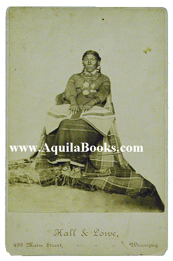 # 123 - 855 Unidentified native woman in traditional clothes, beaded moccasins, and jewellery. 'Hall & Lowe, Artists and Photographers, 499 main Street, Opposite City Hall, Winnipeg.' Original 19th Century Albumen image mounted on printed studio card: 6 1/2" x 4 1/4" Image: 5 1/4" x 4" Price: $750 US Please Inquire |