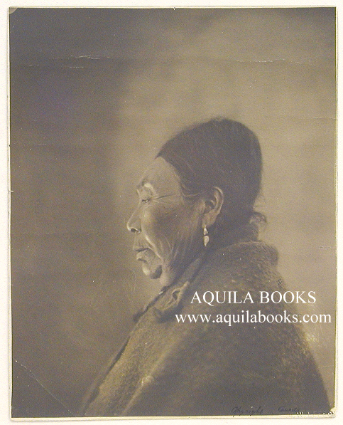 # 118 - 065 "No. 32. Lady Warcas. A Lyce Woman of the West Coast, Vancouver Island." Photographer: B. W. Leeson. [Embossed in right corner, handwritten note on reverse, with "Copyright Canada"] [Ben William Leeson moved to Quatsino Sound in about 1894, where he ran a store with his father (J. L. Leeson & Son). Leeson is particularly noted for his portraits of brooding Indian figures, and was fascinated by "flat-headed" Kwakiutl women.] Original late 19th, early 20th Century Image. Hand-tinted. 9 1/4" x 7 3/8" Price: $575.00 USD SOLD Please Inquire |