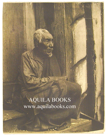# 118 - 069 "No. 8. 'A Quatsino Grandad.' Long Head Native Man , West Coast, Vancouver Island." Photographer: B. W. Leeson. [Embossed in right corner, handwritten note on reverse, with "Copyright in Canada"] [Ben William Leeson moved to Quatsino Sound in about 1894, where he ran a store with his father (J. L. Leeson & Son). Leeson is particularly noted for his portraits of brooding Indian figures, and was fascinated by "flat-headed" Kwakiutl women.] Original late 19th, early 20th Century Image. 9 3/8" x 7 1/4" Price: $850.00 USD SOLD |