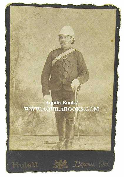 # 118 - 268 [North-West Mounted Police] Unidentified member of North-West Mounted Police. Wearing what appears to be a blue undress patrol jacket with an ?Imperial Service Solar helmet & Sergeant's sword. Ca. 1888 Photographer: J. S. Julett, Napanee, Ontario. Original image: 8 7/16" x 6 3/8" Price: $475 USD Please Inquire |