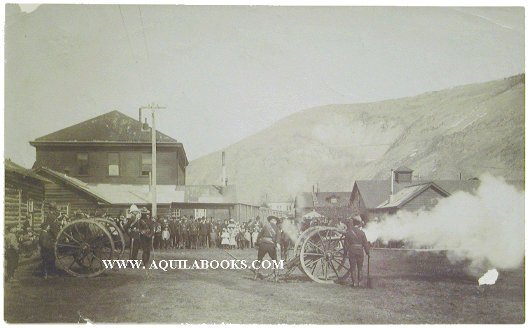 # 118 - 232 Royal North-West Mounted Police From reverse of image: "R. N. W M. P. firing salute at the time of King Edward VII death. Dawson, North-West Territory [Yukon] Asst. Comm. Hood & S/Sgt. Telford are standing together" [at telegraph pole on left] Photographer: Unknown. Ca. May 6, 1910 Original Albumen. 9" x 5 1/2" Price: $300.00 USD SOLD |