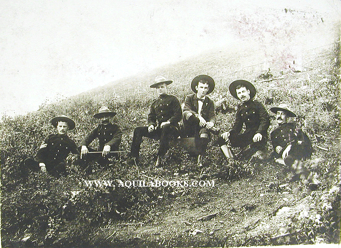 # 118 - 264 [North-West Mounted Police] Bottom edge of image: "Yukon 1905" Six members of the North-West Mounted Police. Photographer: Unattributed Original image on card: Card: 11 7/8" x 9 15/16" Image : 8 5/8" x 6 1/2" Price: $400.00 USD Please Inquire |