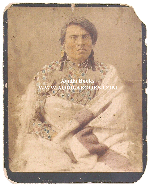 SOLD Hand tinted. Sarcee [Tsuu T' ina] Blackfoot Brave. Photographer: Ross, Calgary. Ca 1885 Original 19th Century on studio card. Card: 9 13/16 " x 7 5/8 " Image: 9 " x 7 9/16" Price: $1675.00 USD Please Inquire |