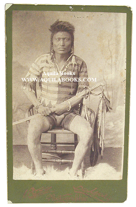 # 118 - 222 Unidentified Blackfoot Warrior w/cavalry sword. Photographer: Ross, Calgary. Original 19th Century on studio card. Card: 8 15/16 " x 5 1/4 " Image: 7 1/8 " x 4 3/4" Price: $2500.00 USD SOLD |