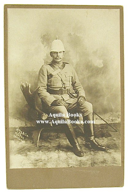# 118 - 307 Original Studio Portrait of Lt. Col. Sam Steele [South African War Service Kit?] In Imperial Service Solar Helmet Starthcona's Horse Samuel Benfield Steele 1851 - 1919 [Who Was Sam Steele?] Photographer: Hegg & Co., Photos, Dawson. Ca. 1898 Original Photograph mounted on studio card: 9 1/2" x 6 1/4" Image: 7 5/16" x 4 7/8" Price: $1250 USD Please Inquire |