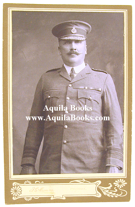 # 118 - 310 Original Photograph: Col. S B Steele. Ca. 1900 Pretoria, South Africa. Boer War. Second in command, Lord Strathcona Horse. Samuel Benfield Steele 1851 - 1919 [Who Was Sam Steele?] Photographer: J. C. Munro, Pretoria. With original salmon coloured glassine studio envelope. Original Photograph mounted on embossed studio card. Card: 6 9/16"x 4 1/4" Image: 5 5/16" x 3 11/16" Price: $725 USD Please Inquire |
