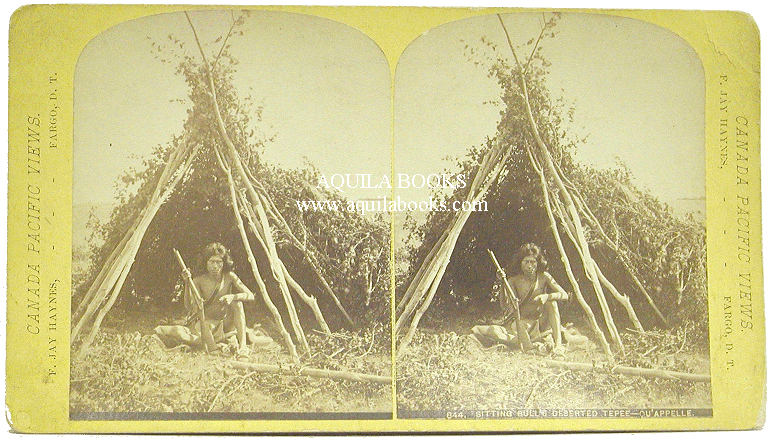 # 118 - 145 "#844. Sitting Bull's Deserted Tepee - Qu'Appelle." Photographed and Published by F. Jay Haynes, Official Photographer C.P.R. Fargo, D. T. Series: C.P.R. Stereoscopic Views Along the Line of the Canadian Pacific Railway. City of Winnipeg, Lake Winnipeg, Lake of the Woods, and Northwest Territory. Original 19th Century Stereoview. 7" X 3 15/16" card. Price: $575.00 USD Please Inquire |