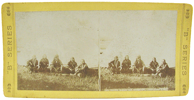 # 118 - 283 Original Stereo view. "14. Pawnee Indians and Interpreter, 'Lily of the West' " "B" Series Photographer: Not attributed Original 19th Century Stereo view. 7" x 3 1/2" Price: $175 USD Please Inquire |