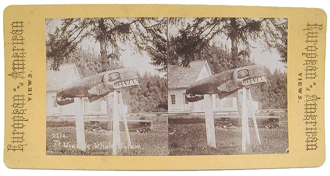 # 118 - 277 Original Stereo view. "221a Ft. Wrangle Whale Totem" European and American Views Photographer: Not attributed. Original early 20th Century Stereoview. 7 " x 3 1/2" Price: $60 USD Please Inquire |