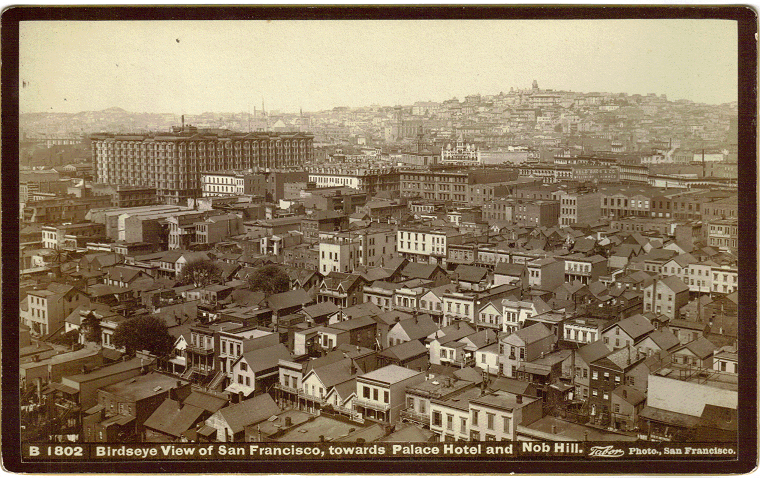 123694 Taber, Isaiah West. San Francisco. Birdseye View of San Francisco, Towards Palace Hotel and Nob Hill. A Cabinet Photograph.San Francisco: Taber, [no date]. (Photograph) Very good. Original cabinet card view of San Franciisco, Ca. Mounted on studio card. Light rubbing. Original albumen view of San Francisco prior to the 1906 Earthquake. Taber photo. B 1802 $350.00 US Inquire |