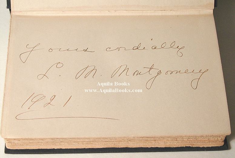 Rilla of Ingleside. Signed & inscribed by Lucy Maud Montgomery. First Edition. New York: Frederick A. Stokes Company Publishers. Copyright 1921 [viii], [1], 1-370 pages Inscription : 'Yours cordially L. M. Montgomery 1921' This book was displayed at the L. M. Montgomery Exhibition in 2005, and is featured in the catalogue of that exhibit. Price: $ 1500.00 USD SOLD |