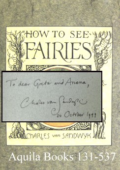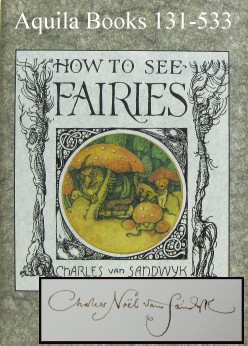 How to See Fairies - #131539 SIGNED 2nd ed. SOLD 16 pp. The Fairy Press. 7x5" (17 X 12.5cm). Text, pen and ink drawings and water colour illustrations printed offset (1,000 copies). Single signature machine sewn in card wrap. Text set in Hadriano. Illustrated dust jacket printed in colour. Signed by Van Sandwyk on the title page in black ink. A special boxed edition of 'How to See Fairies' is also available which can be viewed here |
