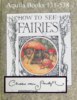 How to See Fairies - #131537 INSCRIBED 3rd ed. SOLD 16 pp. The Fairy Press. 7x5" (17 X 12.5cm). Text, pen and ink drawings and water colour illustrations printed offset (1, 000 copies). Single signature machine sewn in burgundy card wrap. Text set in Hadriano. Illustrated dust jacket printed in colour. Included with the book is a matching book mark. Inscription on inside of front wrapper (in black ink), reads "To Greta and Ariana, Charles Van Sandwyk, 24 October 1999". |