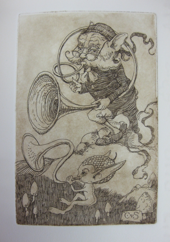 The Philosopher's Cupboard (By Charles Van Sandwyk and Waisiki Doughty) #128676 - SIGNED 1st limited edition, 2009 (18 pages)- Savuti Press SOLD Octavo (25 X 17.5 cm.) Bound in original black stiff paper boards. Marbled paper end sheets. Grey paper limitation page. Printed by lithography and letterpress. One single full page Copper plate etching called Three Generations, signed by Charles. Original printed brown paper wrappers with onlay title. A wonderful production of this hand made book. Charles's latest limited edition of 199 copies. ~ ~ ~ ~ ~ ~ ~ |
