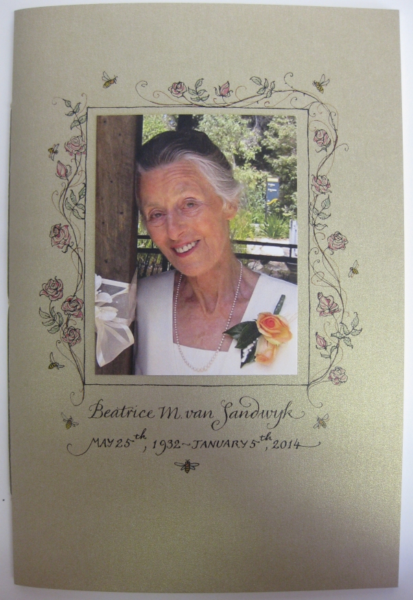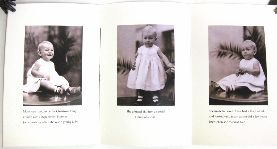 Octavo. Original metallic light gold wrappers, photo of Beatrice Van Sandwyk onlaid on front cover, with elegant decorative rose vines and bees illustrated around it. Black and white photograph of a young Mr. Van Sandwyk on back wrapper. Two sketches, one of an angel child on the first page, another of a sleeping mouse on a candlestick with a book. Ten black and white photographs, including one fold-out. Twenty-one color photographs. |